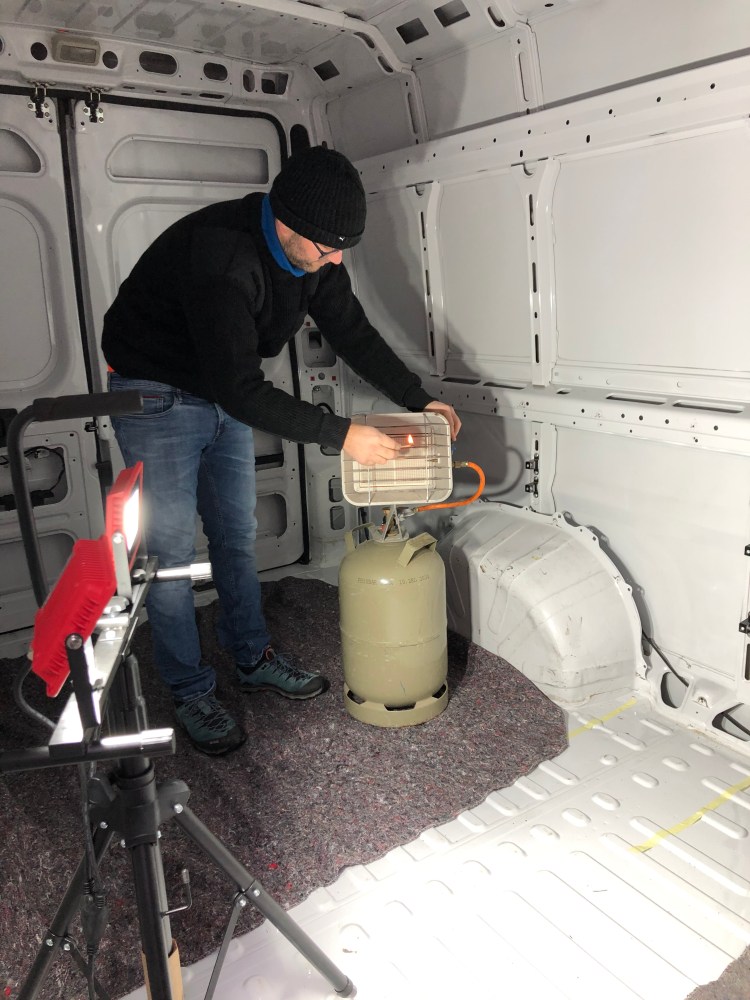 Heute kümmern wir uns um die Hohlraumversiegelung des Unterbodens und das Wiedereinsetzen der Stopfen. Hoffentlich geht das bei 0°C, wir haben mit einer Gasheizung versucht, das Auto aufzuheizen und können glücklicherweise ein paar Stunden arbeiten, ohne zu frieren. Leider fehlt uns am Ende ein Stopfen und ein Neukauf wäre mit mindestens 20€ verbunden, hoffentlich finden wir den noch…
