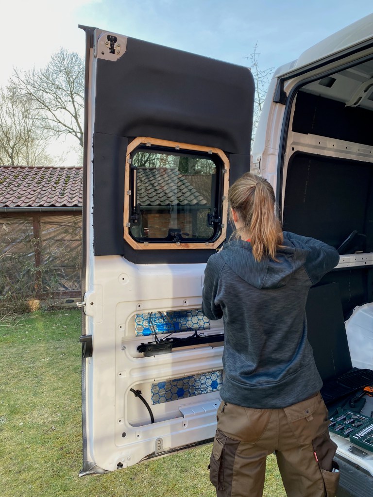 Die Heckfenster benötigen noch Dämmung, das ist heute Tagesaufgabe. Gar nicht so einfach, bei der Karossengeometrie. Darüber hinaus stellt sich die Frage nach einem sinnvollen Abschluss an den Türkanten, damit weder Zugluft noch Wasser hier eine Chance haben. Am Ende lösen wir es mit der separaten Dämmung der Plastikblenden, die im unteren Teil der Türen ermöglichen, dass man später nochmal an die Türhydraulik kommt und dämmen den Rest der Tür direkt auf die Karosse. Darüber kommt dann später noch Filz und ggf. ein Dichtband am Rand der Tür, damit es nicht zieht.