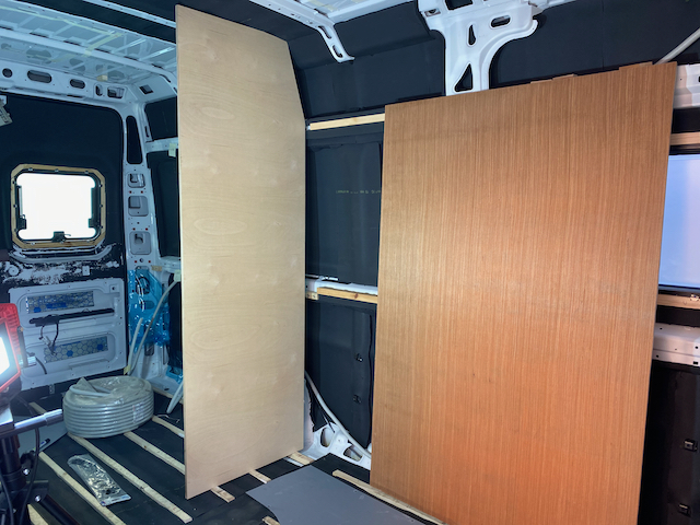 Wie baut man bei den ganzen Winkeln, Ausbuchtungen und Verstrebungen vernünftig ein Bad? Diese Frage beschäftigt uns heute. Wir erkennen schnell, dass wir an der Außenwand den oberen Teil der Badwand abwinkeln müssen, um nicht zuviel Platz zu verschenken und tüfteln mit Ausgleichsleisten, die gleichzeitig zur Befestigung der Badwand an der Karosse dienen sollen. Da die Wand nicht geschraubt werden sollte (sonst haben wir wieder Wasser, wo keins hingehört und nach gestern reicht uns das erstmal), müssen wir Auflageflächen haben, an denen wir sie ordentlich verkleben können. Der Zollstock ist heute unser Freund, hier ist auch wirklich gar nichts gerade. Alex raucht der Kopf, Sarah kommt mit dem Improvisieren noch ganz gut zurecht und hält den Plan und die Motivation aufrecht. Wir schaffen das schon.