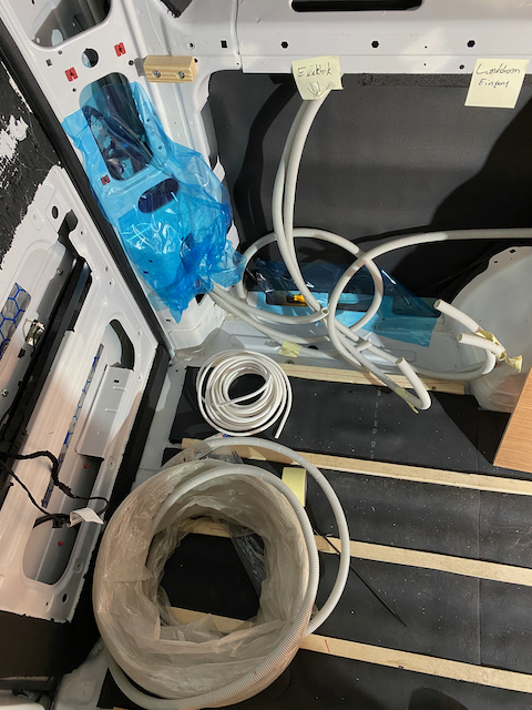 Alex zieht noch ein paar Leerrohre, damit wir am Ende auch Stromkabel durch den Bus legen können und dann ist Feierabend, ein Tag im gefühlten Aprilwetter macht Lust auf eine heiße Dusche.