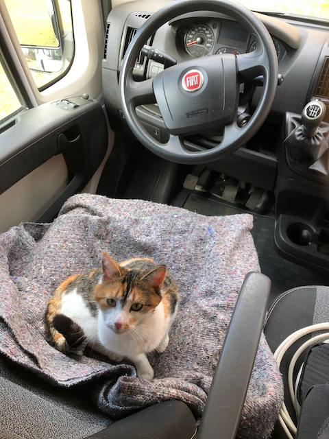 Heute haben wir eine aufmerksame Bauaufsicht, die sich den Fahrersitz gesichert hat und genau aufpasst, was wir da machen.