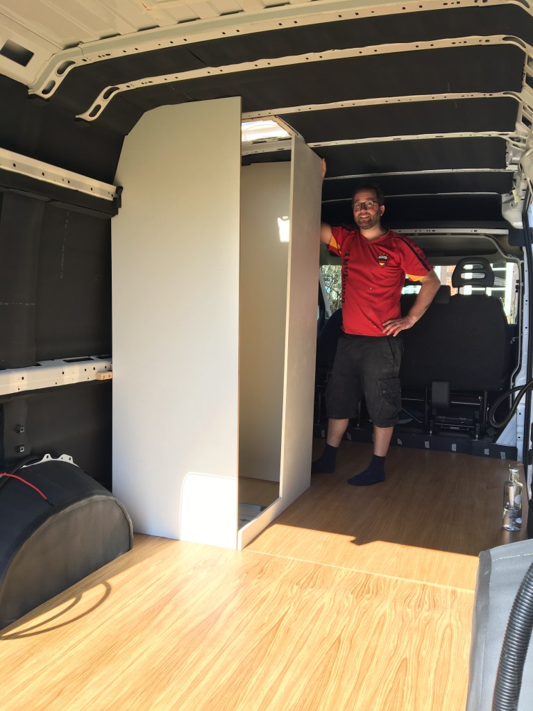 Heute ist endlich der Tag gekommen, an dem wir die Einzelteile unseres späteren Badezimmers endlich auf die Bodenplatte stellen und schauen können, ob es so passt, wie wir uns das gedacht haben. Bis auf eine klitzekleine Kleinigkeit, die noch einen kurzen Sägeschnitt erfordert, passt alles wunderbar zusammen. Nun können wir auch endlich die Position des Duschwannenausschnittes bestimmen und sägen. Auch das Dachfenster fügt sich gut in das Bad ein, sodass wir dort auch eine gute Lichtquelle besitzen. Fehlt nur noch der Toilettenkasten, die Deckenplatte, ein paar Lampen für dunkle Tage und Nächte sowie natürlich die Duscharmatur, auf die wir schon seit einer ganzen Weile warten. Hoffentlich lässt sie sich nicht mehr allzu viel Zeit…