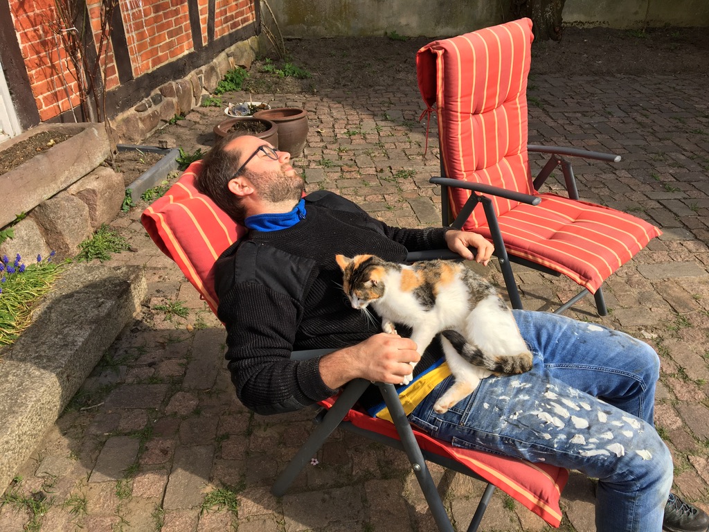 Danach ist Zeit für ein bisschen Sonne tanken und entspannen. Auch unsere Bauaufsicht findet das ziemlich einladend.